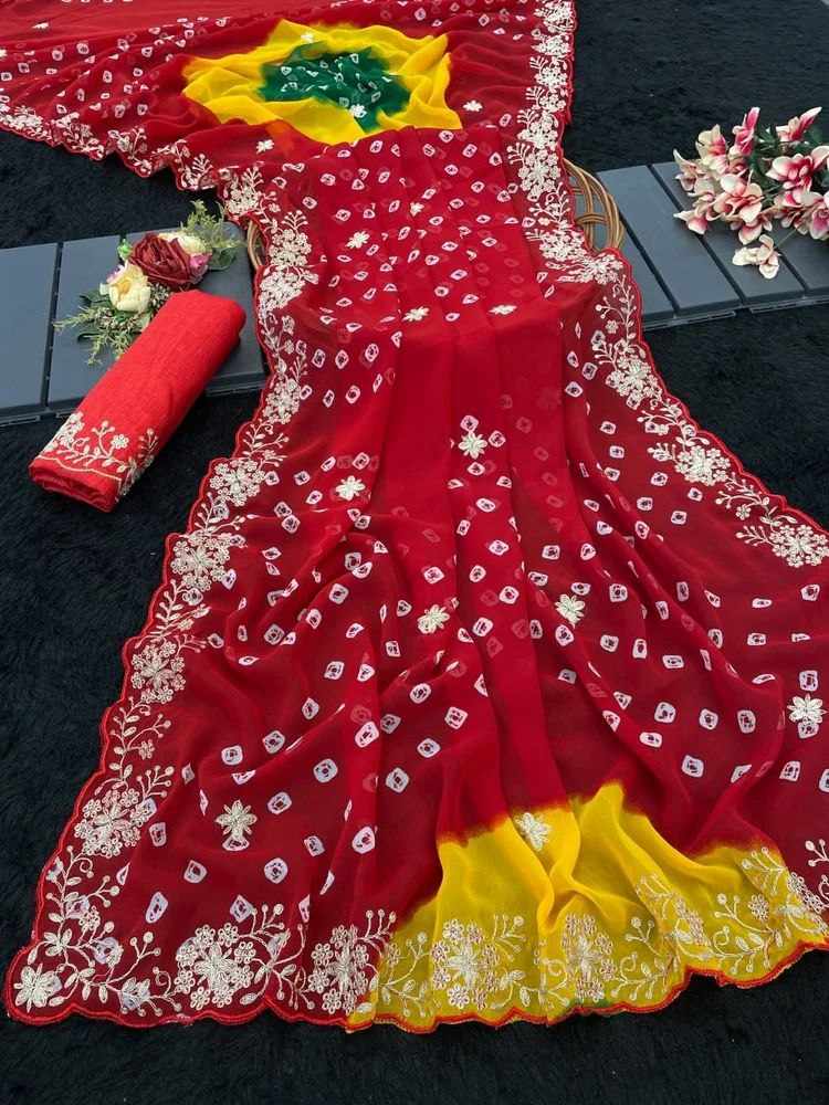 Name : PIYU P1038 MULTI COLOR RED BANDHANI Saree