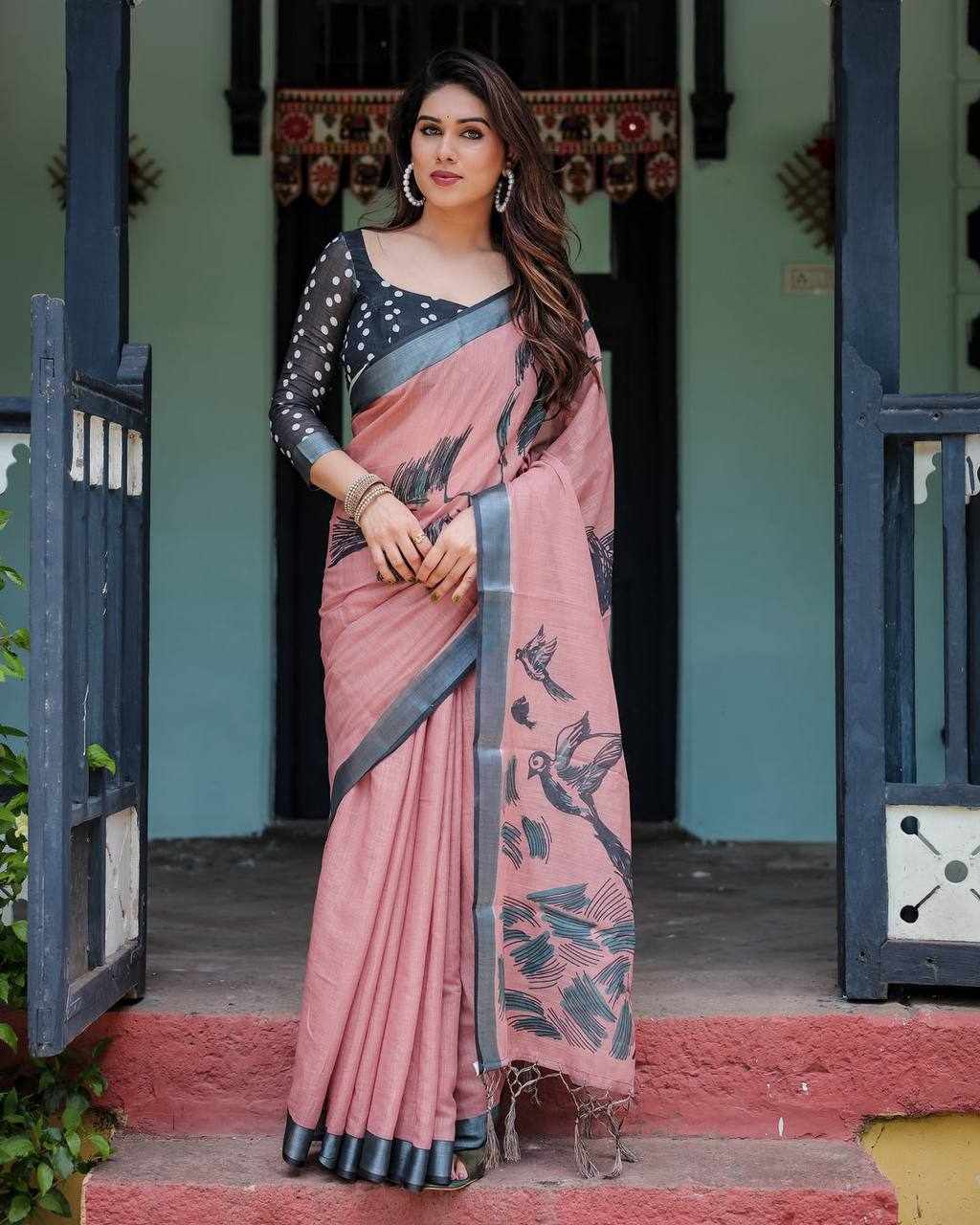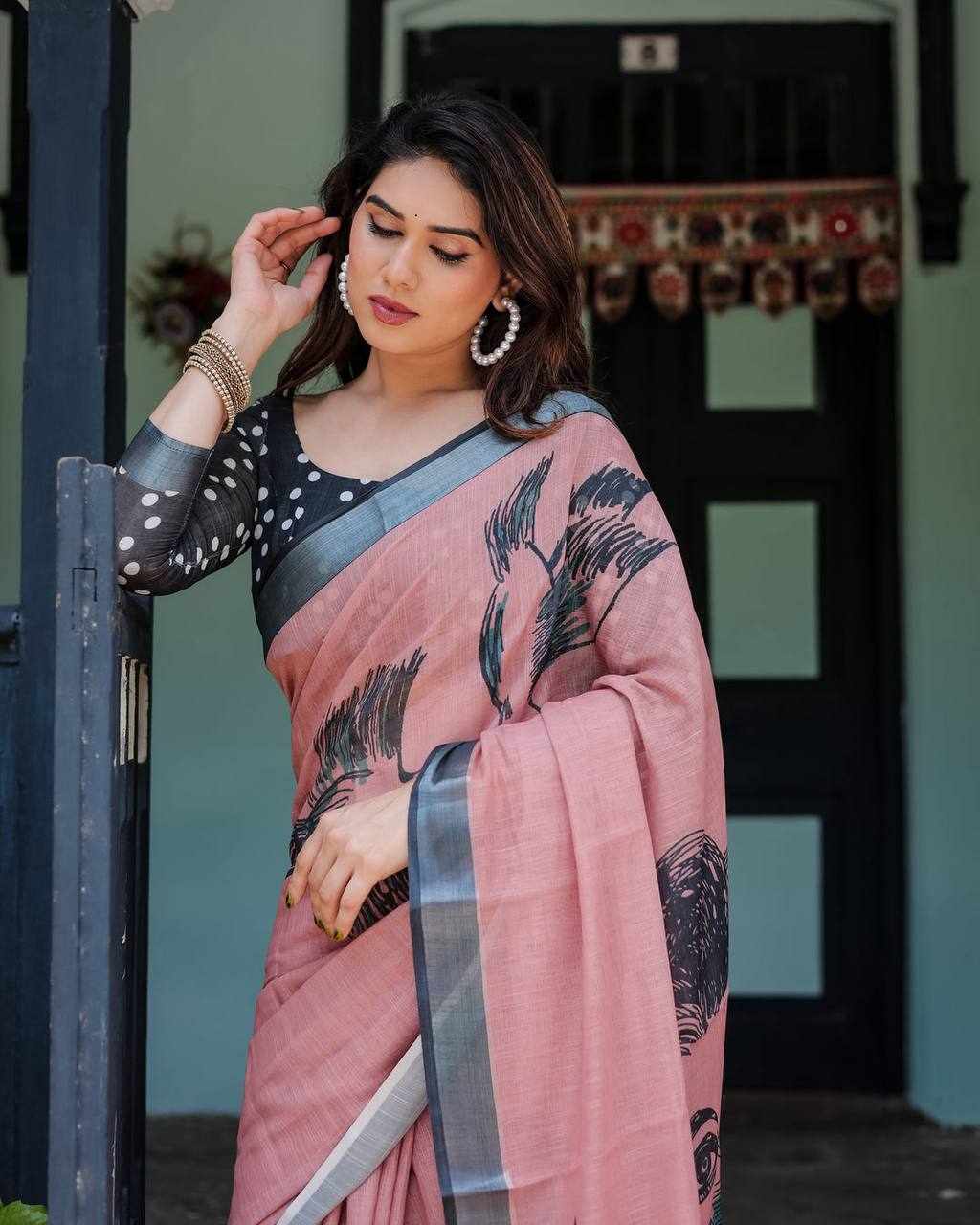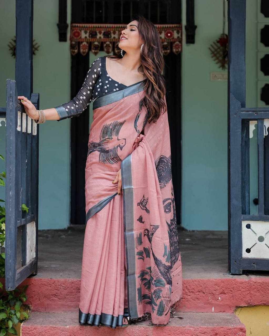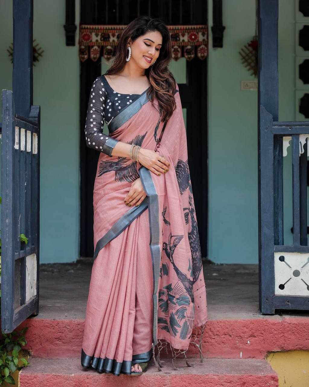 Silver Weaving Patta Linen Cotton Saree