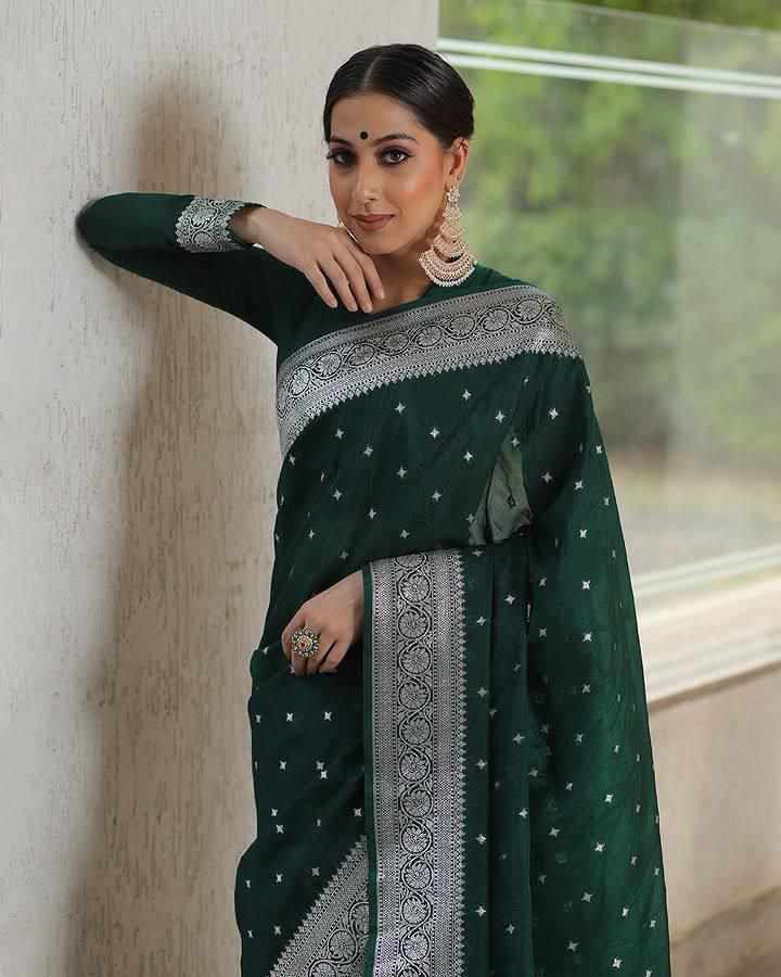 Reviews for MF 1680 GREEN BANARASI SOFT LICHI SILK SAREE