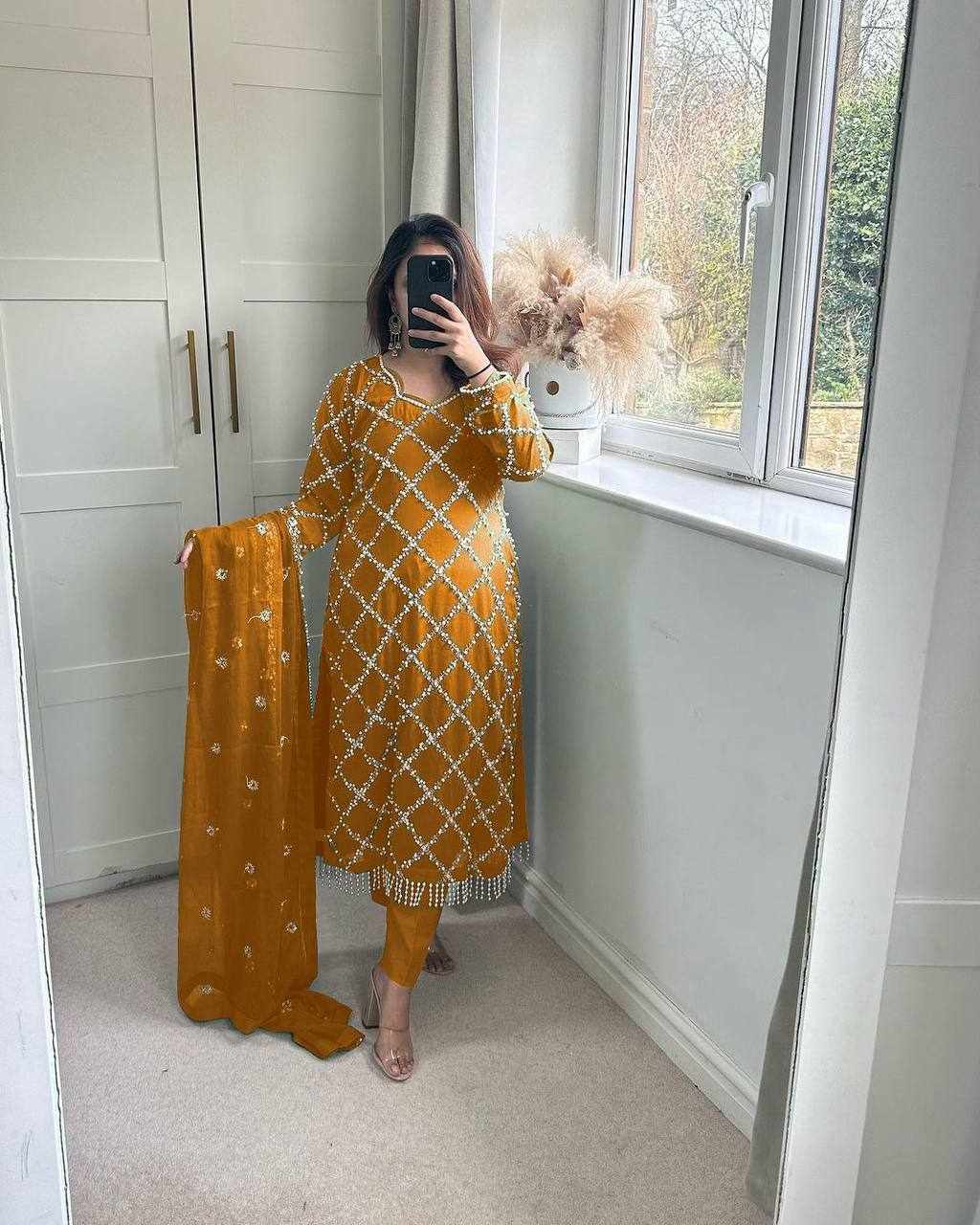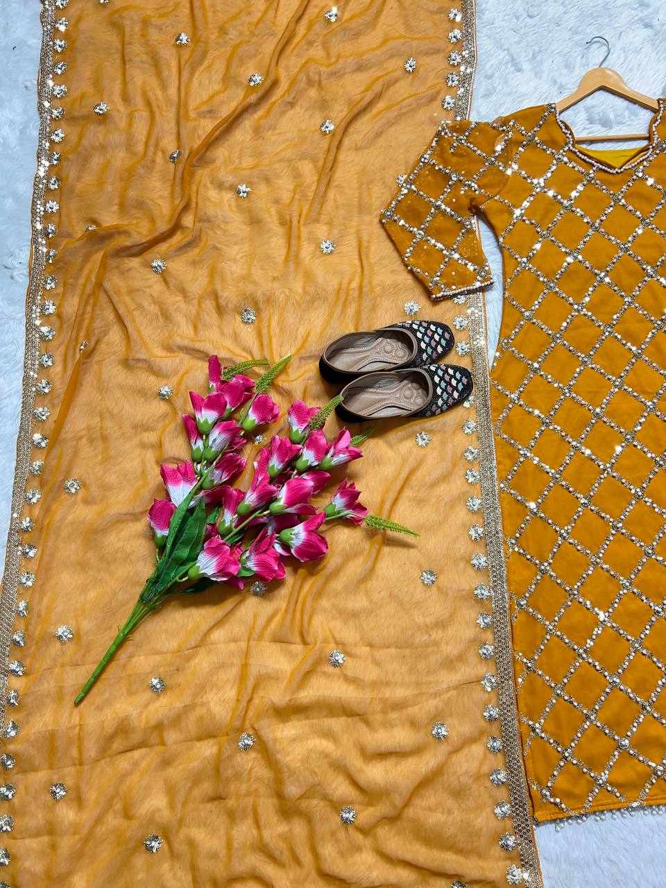 MF 409 New Fancy Embroidered Yellow Dress
