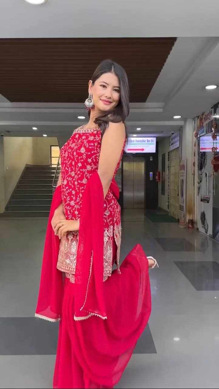 Stylish Faux Georgette Sharara Suit Set