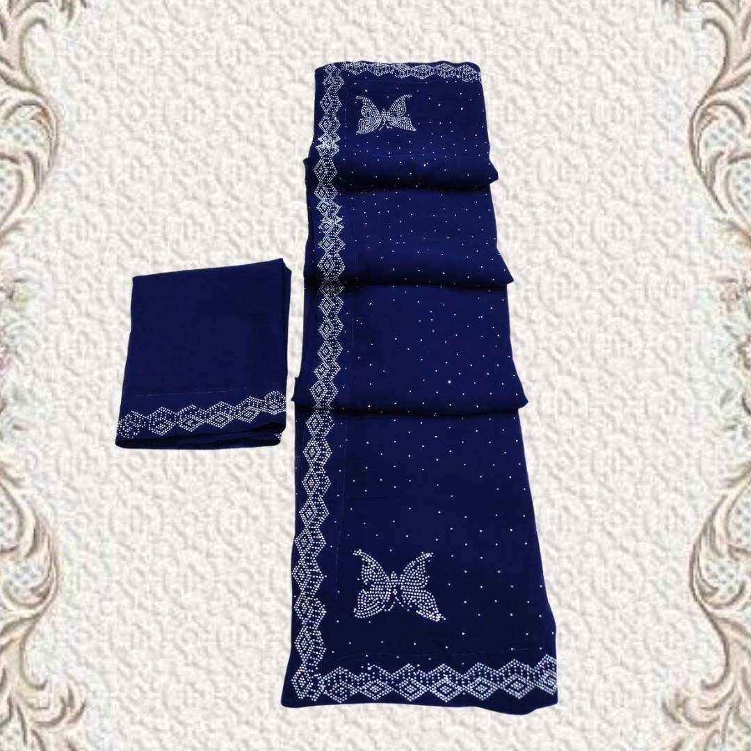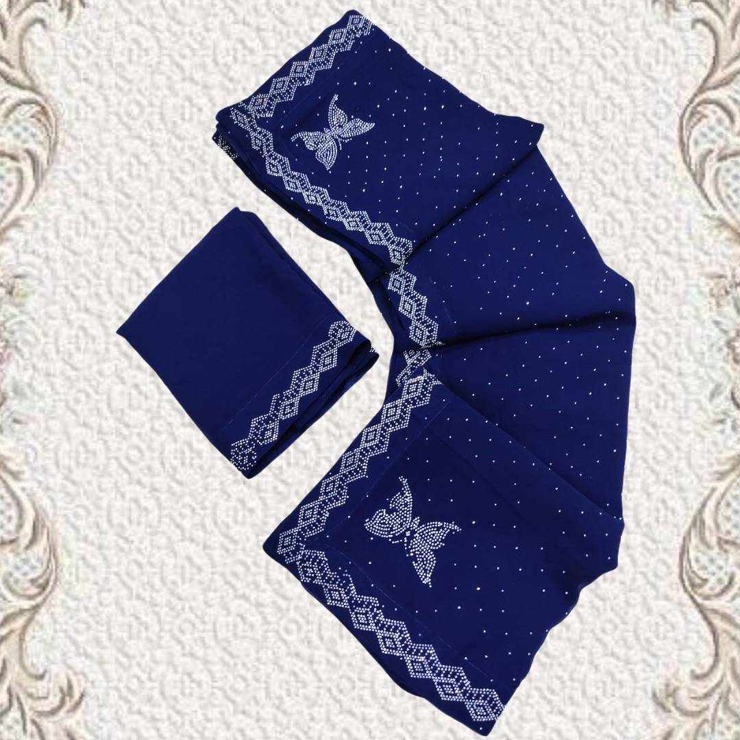 S4s Blue Siroski Butterfly Stones Lace Georgette Party Wear Saree