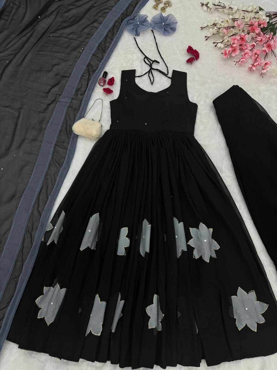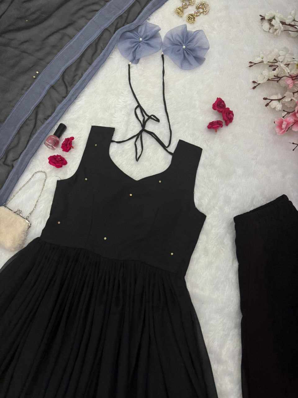 Plazo – Pure georgette flared plazo, fully stitched for a perfect fit